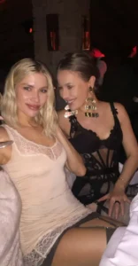 Ксения Собчак и Елена Перминова позируют в контрастных полупрозрачных нарядах
