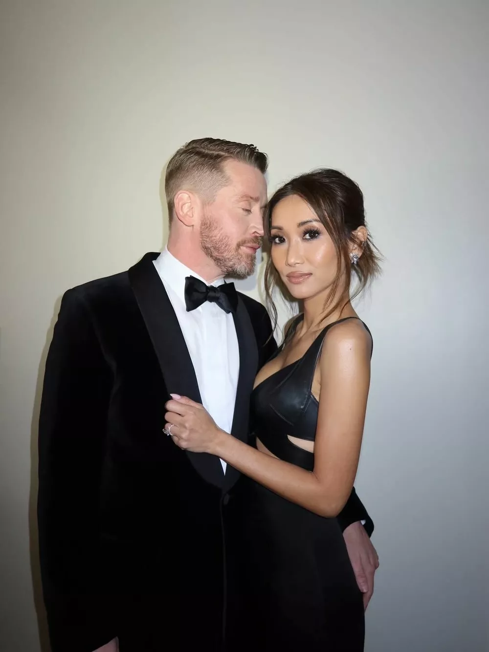 На премии влюбленные выглядели по-голливудски элегантно: Маколей носил черный костюм со смокингом, а Бренда — черное вечернее платье с кожаным декольте крест-накрест.