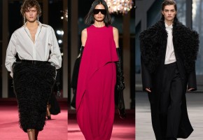 Что носим: Пушистые куртки из овчины, страусиные перья на рукавах и сумках, классические пальто из фланели.