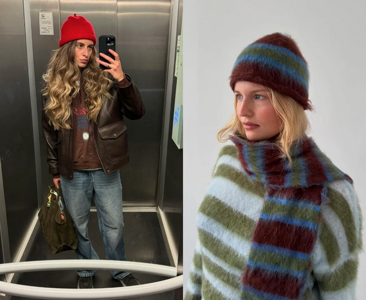 Еще одно преимущество — практичность. Яркий головной убор легко вписывается и в городской минимализм, и в расслабленный кэжуал: сегодня вы носите его с пуховиком и спортивными штанами, завтра — с классическим пальто и строгими брюками.