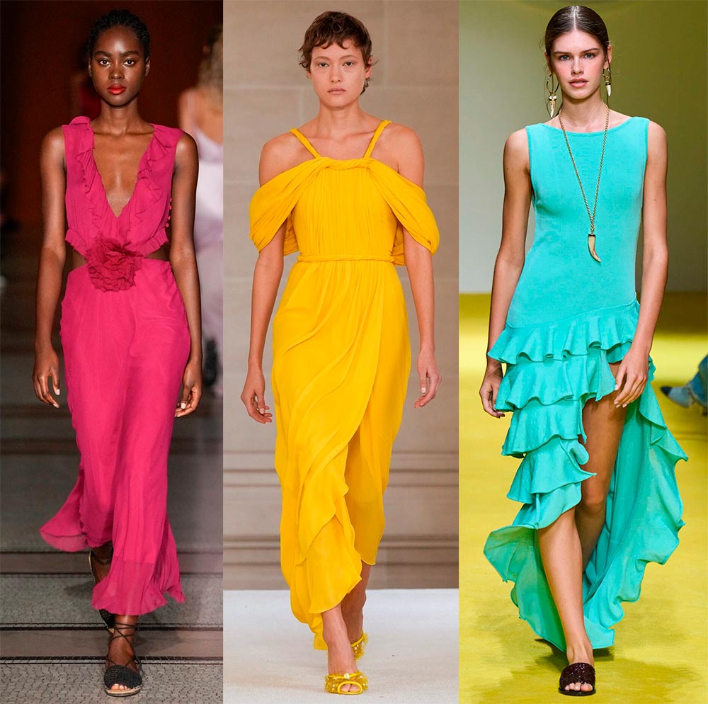 Как одеться, если вы летним вечером выходите с друзьями поужинать и потанцевать? Выбирайте яркие цветовые оттенки – солнечный желтый или коралловый, оранжевый цвет апельсина или яркий цвет электрик. Сочные краски поднимают настроение, а женственный крой, оставляющий открытыми плечи, – идеальная возможность продемонстрировать красоту ткани и, конечно же, вашу.