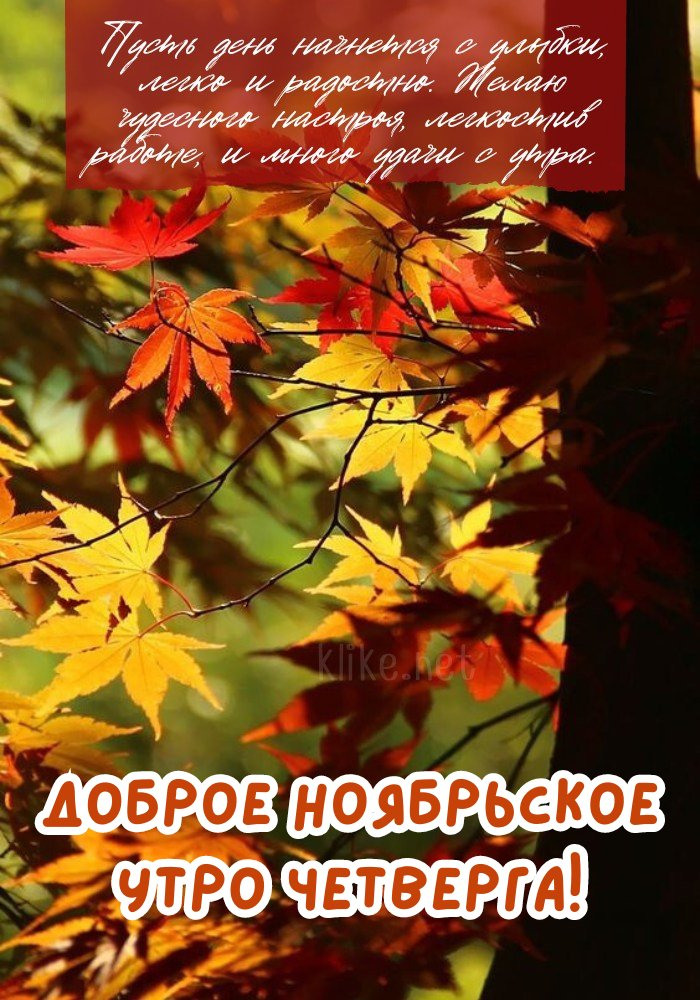 Оптимистическая подборка — картинки и открытки доброе ноябрьское утро четверга! Время становится особенно задумчивым: все вокруг будто притихло, замедлилось и укуталось в невидимую вуаль, давая возможность почувствовать ритм своего сердца и отбросить всё лишнее. Пускай день пройдёт с мягкой уверенностью, наполнится уютными моментами, спокойными мыслями и приятными новостями, что оставят добрый след в душе.