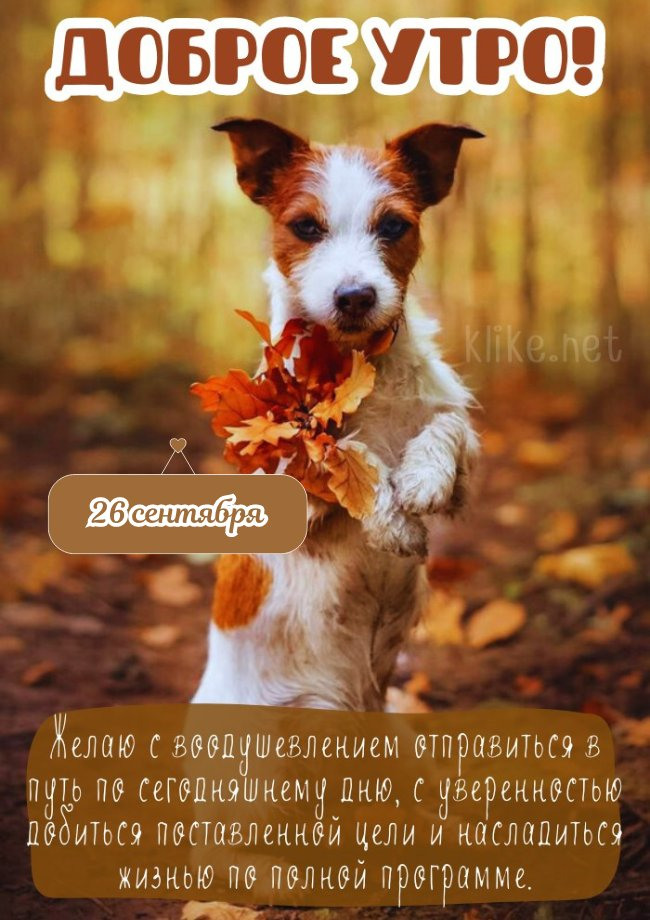 Отличная подборка — картинки и открытки доброе утро 26 сентября! Воздух наполнен осенней свежестью на заре дня, даря чувство чистоты и обновления. Пусть сегодняшний день будет ясным и абсолютно безоблачным для вас.