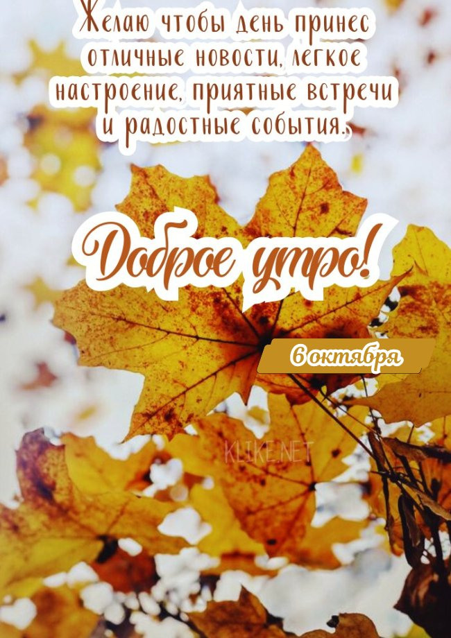 Вдохновляющая подборка — картинки и открытки доброе утро 6 октября! Наступила пора горячего чая с вареньем, уютных пледов и неспешных разговоров о главном. Пусть день сложится гармонично, с приятными неожиданностями, хорошими новостями и ощущением, что вы находитесь именно там, где нужно.