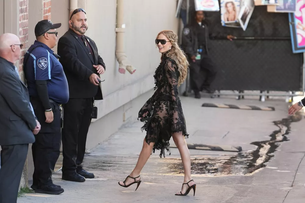 И новую экранизацию, еще до выпуска получившую такие отзывы, Марго продвигает соответствующе: появляясь на публике в весьма откровенных нарядах. Так, она посетила вчерашнее ток-шоу “Джимми Киммелл в прямом эфире» в готичном прозрачном кружевном платье с длинным рукавом, открытым декольте, украшенном оборками, и ассиметричной юбкой миди.