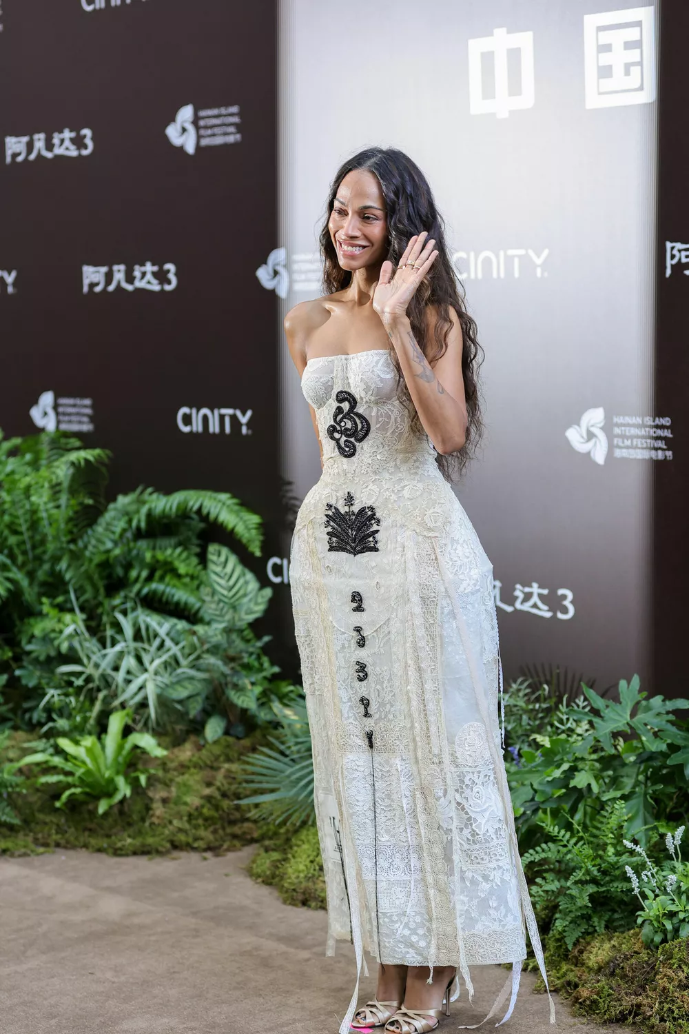 47-летняя Зои Салдана посетила премьеру фильма “Аватар: Пламя и пепел” в Санье, Китай, в минувший понедельник. Звезда играет в фильме Джеймса Кэмерона главную героиню Нейтири. Зои очаровала публику, появившись на премьере в белом кружевном платье без бретелек. Платье-корсет, расшитое кружевными орнаментами, подчеркнуло стройную фигуру актрисы. Свой стильный ансамбль она дополнила золотистыми босоножками на каблуках, а также золотыми аксессуарами.