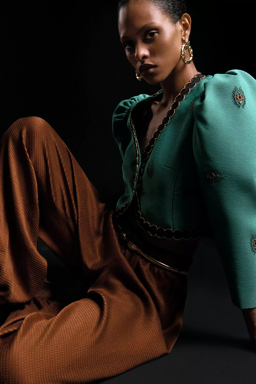 Костюмы с восточными принтами, мини с бисерной тесьмой, кэтсьют, чалма и топ из ткани ламе переносят в атмосферу марокканской ночи неспроста: новая коллекция бренда — посвящение магии и эстетике знаменитого сада Мажорель в Марракеше. Это место, десятилетиями будоражившее воображение художников и творцов, теперь воплотилось в изысканных образах, где восточная таинственность встретилась с фирменным парижским шиком Botrois. Любая из позиций обещает стать вашей любимой вещью на выход. Эффектно и очень красиво.
