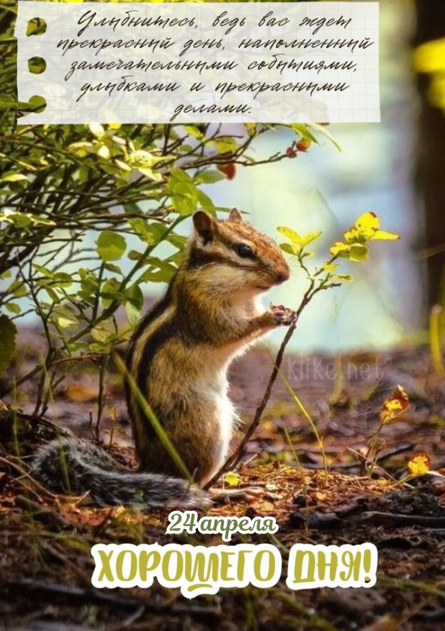 Улыбчивая открытка на 24 апреля добрый вечер!