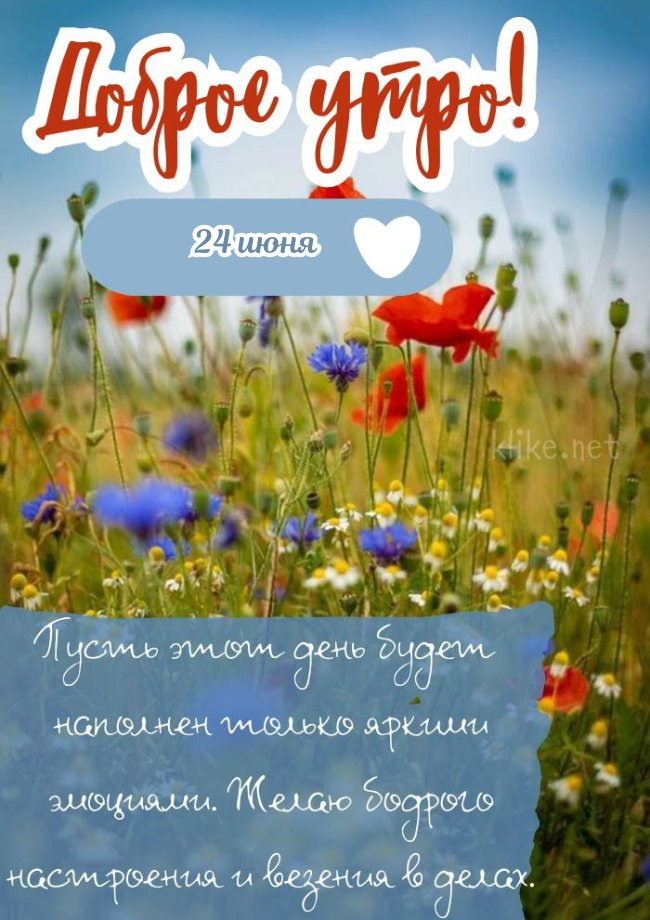 Приятная подборка — открытки и картинки на 24 июня: неповторимые и насыщенные пожелания на утро, день, вечер и ночь. Тёплые ливни сменяются солнечными днями, создавая идеальные условия для роста и процветания всего живого. Пусть и ваши начинания получают такую же благоприятную среду для развития и успеха.