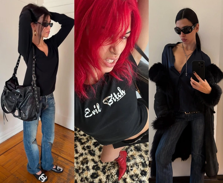 Она не играет в классического модного инфлюенсера, а собирает свой образ из нескольких ролевых моделей одновременно: студентки арт-школы, downtown‑героини и девушки из модной тусовки, которая строит вокруг себя маленькую, но очень узнаваемую вселенную.