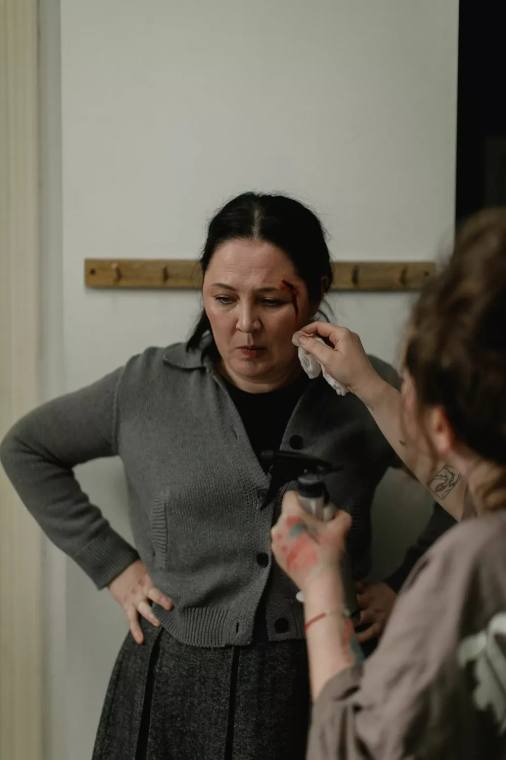 Она когда-то горела танцем — искусство было ее страстью и способом самовыражения. Но со временем бытовые заботы, давление обстоятельств и агрессивное поведение пьющего мужа вытеснили творчество из ее жизни. Теперь она — тень прежней себя: уставшая, загнанная, живущая в постоянном напряжении.